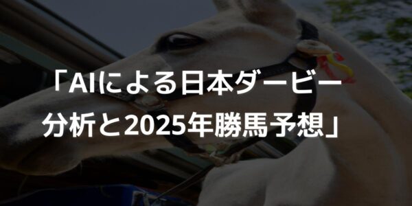 AIによる2025年日本ダービー予測 競馬の高い予測精度と分析力で注目を集めているAIが、2025年の日本ダービー予想を公開しました。過去15年間のデータ分析をベースにしたこの予測は、無数の競走馬データから優勝馬の特徴を探し出すAIの力を存分に発揮したものとなっています。 過去15年の日本ダービー結果とその分析 過去15年間の日本ダービーの勝ち馬を見てみると、特定のパターンが見えてきます。このパターンをベースにしたデータ分析が、AI予測の信頼度を高めています。 日本ダービー勝ち馬の特徴 日本ダービーの勝ち馬はさまざまな特徴を持っていますが、その中でも筋力の強さと直線でのスピードが挙げられます。また、骨太な体型と強靭な精神力も勝利にとって重要な要素となります。 日本ダービーに強い騎手ランキング どの騎手が日本ダービーに強いのかランキング形式で紹介します。ここでは過去の勝利数、勝率、連対率など、具体的な数字をもとにランキングを作成しています。 無料競馬AIによる2025年日本ダービー予想 AIは、2025年の日本ダービーの優勝馬について予測を行いました。その結果、以下の結論に至りました。 「2025年の日本ダービーの優勝馬は、統計データや過去のパフォーマンス、そしてAIが算出した確率をもとに特定された一頭である。この馬は過去の勝ち馬と同様に筋力が強く、直線でのスピードが出ることが予測されている。また、ダービーに強いとされる騎手が手綱を取ることが予想されており、その組み合わせも優勝への期待感を高めている。」 具体的な馬の名前については、競走前日までの最終確定を待って公開される予定です。また、AIの予測だけでなく、それぞれの競走馬の能力や騎手のスキルなども考慮に入れて、自分なりの予想を楽しむことを推奨します。 さいごに AIによる予測はあくまで参考の一つであり、最終的な勝敗はその日のコンディションや馬や騎手の力量に左右されます。しかし、これまでのデータをもとにした理論的な予測は競馬の楽しみ方の一つであり、自分自身の予想を補完する重要なツールとなります。