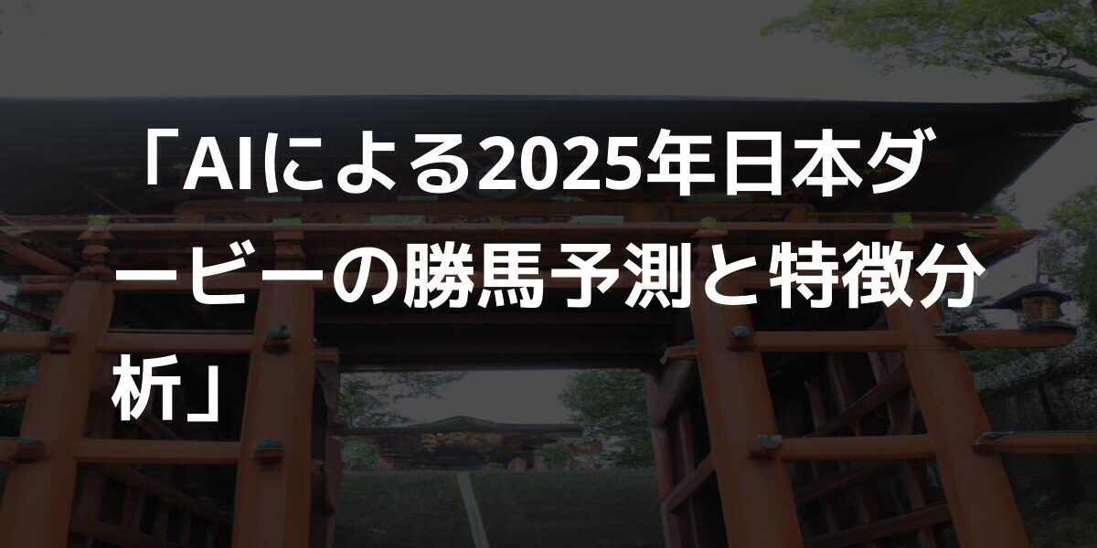 以上の特徴を基に、AIが分析を行い、2025年の日本ダービーの勝馬予想を行います。AIは膨大なデータからパターンを抽出し、現時点での最善の予想を行います。